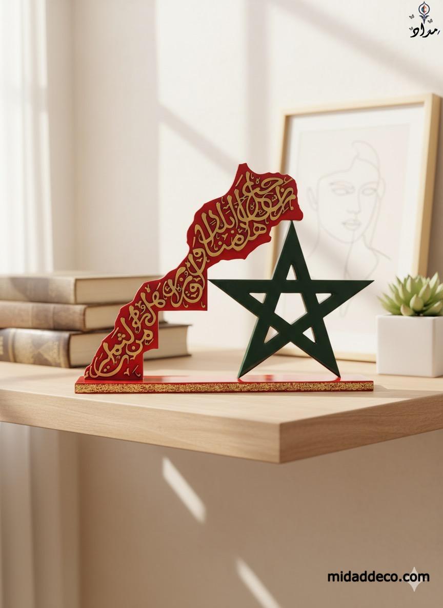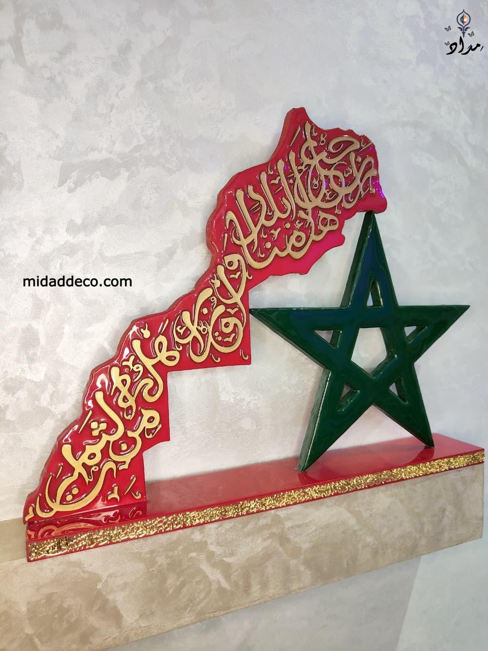 مجسّم المغرب الوطني – خريطة وزخرفة الخط العربي مع النجمة